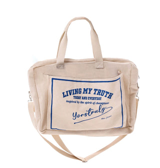 Her gün kendi gerçeğini yaşayan ve yaşamaya çalışanlar için daimi bir hatırlatma, cesur ve işlevsel bir ifade: Yorstruly kanvas spor çantası. Sporcular ve aktif yaşam tarzları düşünülerek tasarlanan bu geniş çanta, hem tüm ihtiyaçlarını taşıyacak alanı sunar hem de özgünlük ve stil konusundaki duruşunu yansıtır.