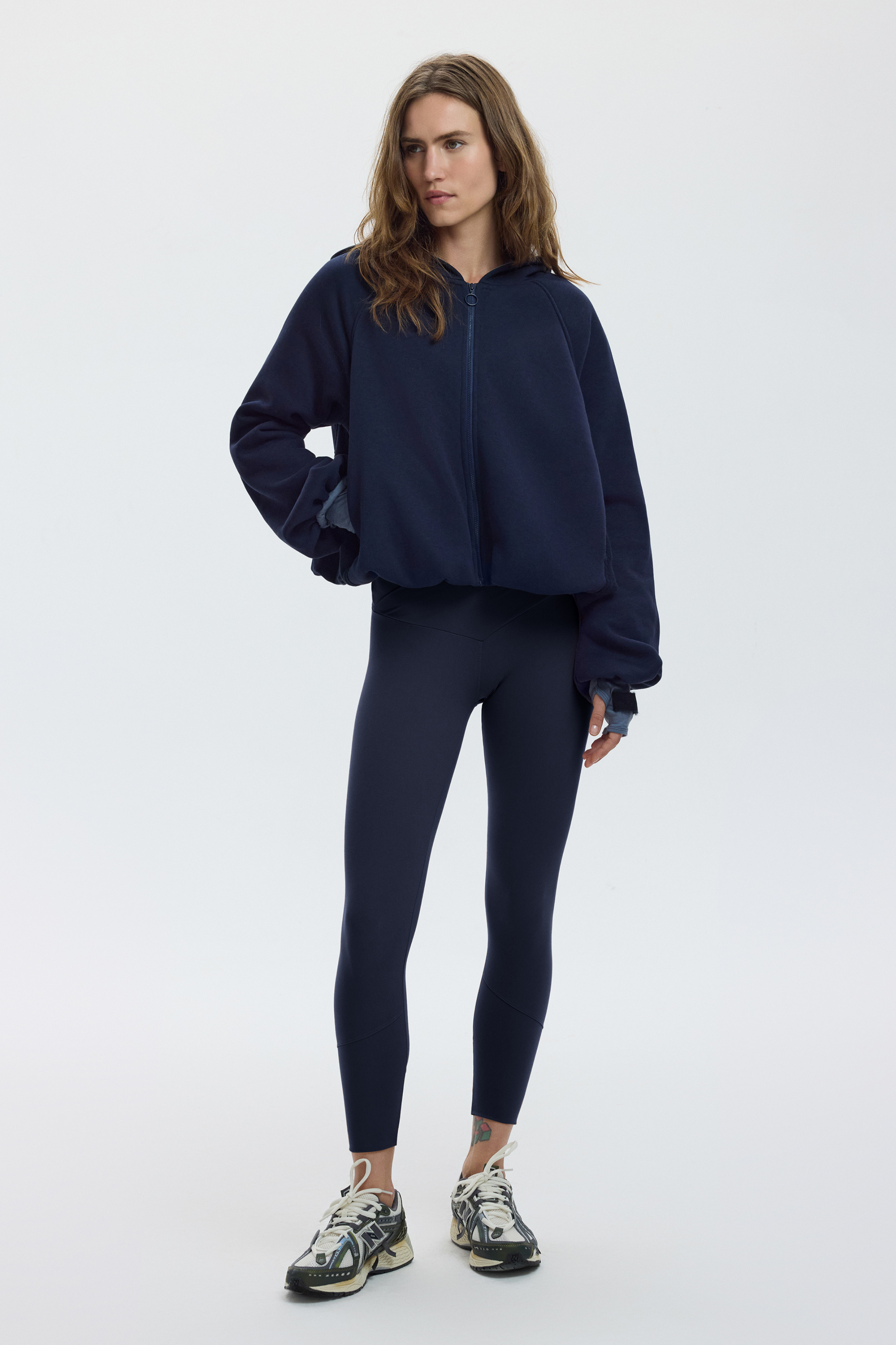 Bu kapüşonlu sweatshirt, balon kolları ve kısa kesim, cropped siluetiyle dış giyim koleksiyonumuzun en sevdiğimiz parçalarından. İçi % 100 Merino yününden suprem bir astarla kaplandığı için, klasik bir sweatshirt değil, konforlu ve sıcak tutan bir dış giyim konforu sunar.