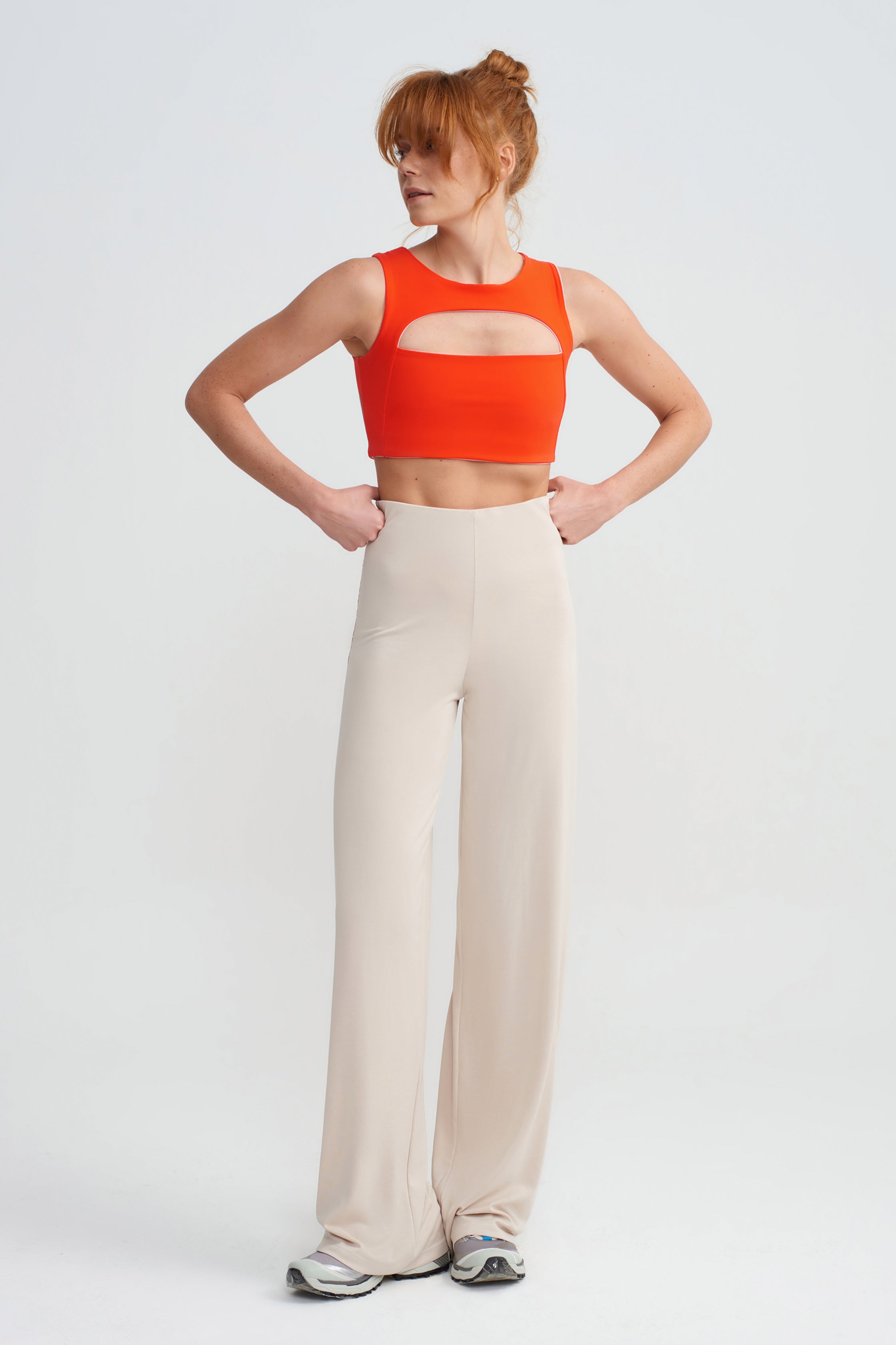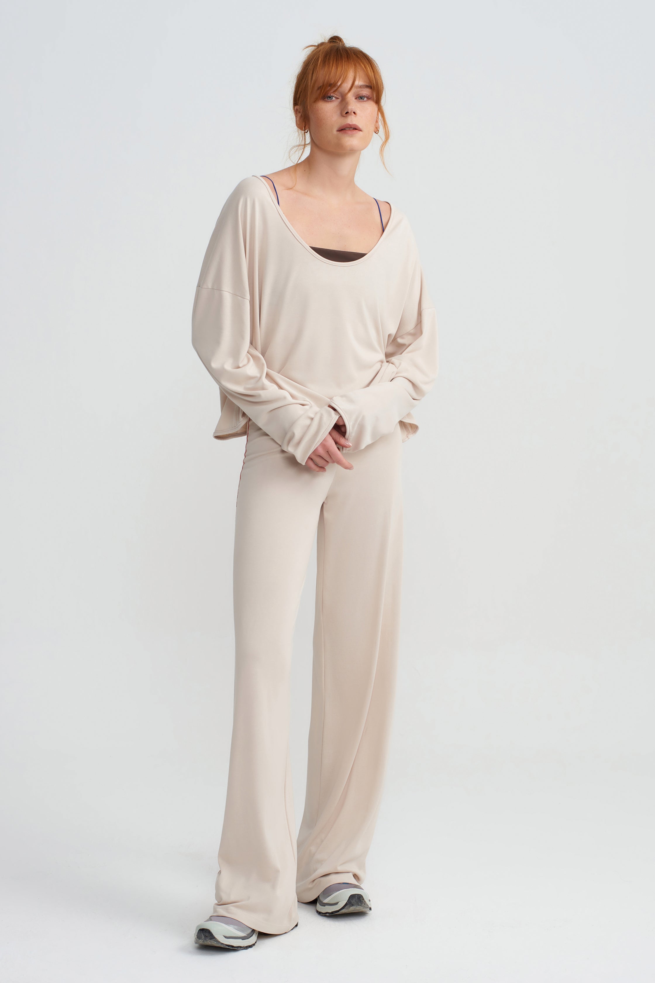 Çok sevilen STUDIO PANTS, dış bacağında nar çiçeği renginde dekoratif dikişi bulunur. Yüksek belli, bol kesimli, Modal elyafın kadife hissini taşıyan bir üründür. Rahat ve aynı zamanda vücut kıvrımlarınızı düşünerek tasarlanmıştır. Akıllı bir kupa sahiptir. Günlük aktivitelerinizde giymeniz için tasarladık. Ürün çabuk kurur o nedenle yoga ve pilates aktivitelerinizde de kullanabilirsiniz. Kadife dokulu, dökümlüdür, teninizdeki hissi de yumuşacıktır. Modelimiz, 36 bedendir, 1.74 cm boyunda olup bel ölçüsü 67 cm ve kalça ölçüsü 94 cm'dir. S beden giymektedir.