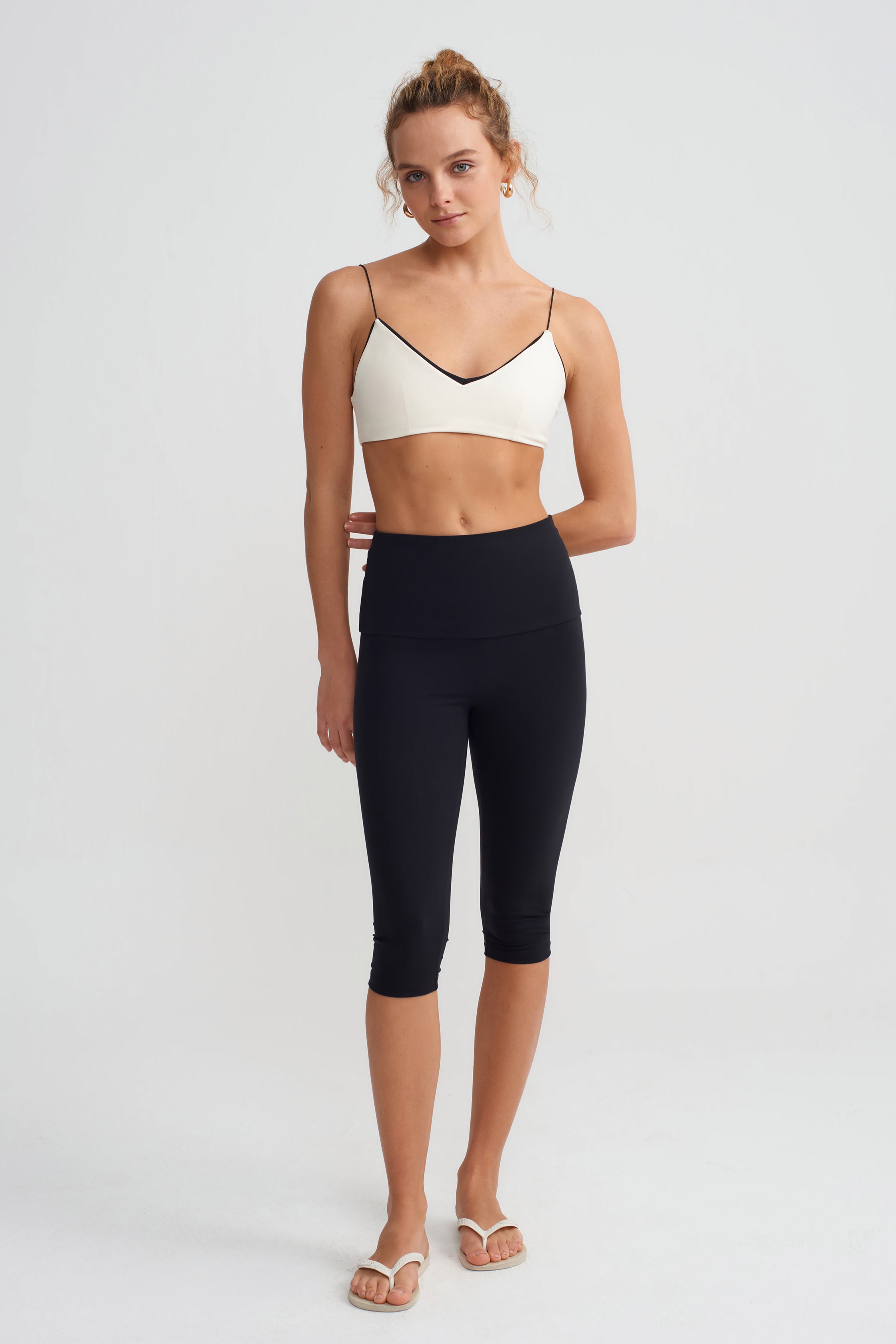 Geçmişe dönüş trendlerinden bir tanesi de CAPRI tayt, diz altı uzunluğu ve yüksek beliyle bu sezon daha çok göreceğimiz bir tayt. Her zamanki sarıp sarmalayan ve toparlayan, bir o kadar da yumuşak kumaşımızla üretildi.